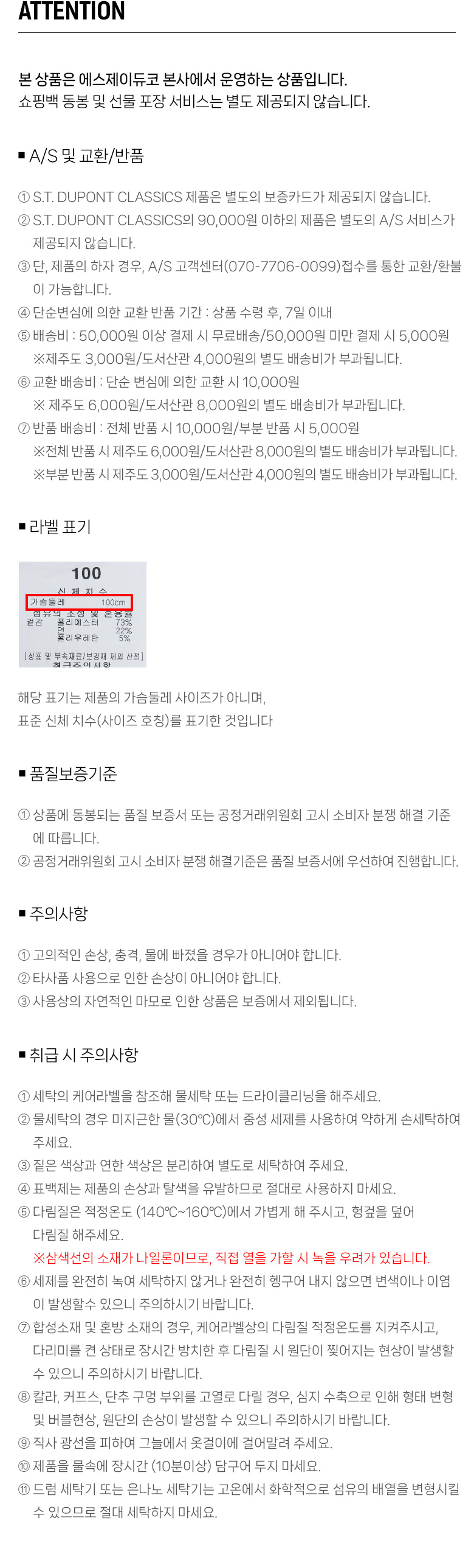 세탁방법 및 취급시 주의사항