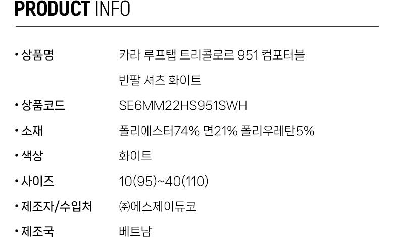 카라 루프탭 트리콜로르 951 컴포터블 반팔 셔츠 화이트 SE6MM22HS951SWH