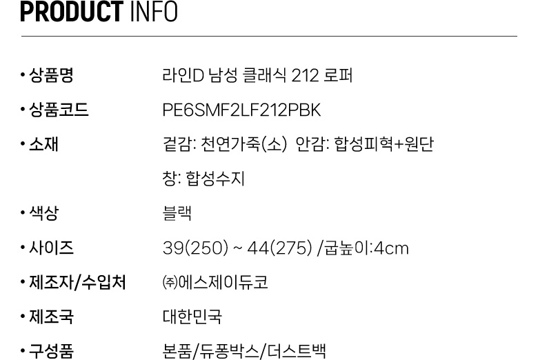 겉감: 천연가죽(소) 안감: 합성피혁+원단 창: 합성수지