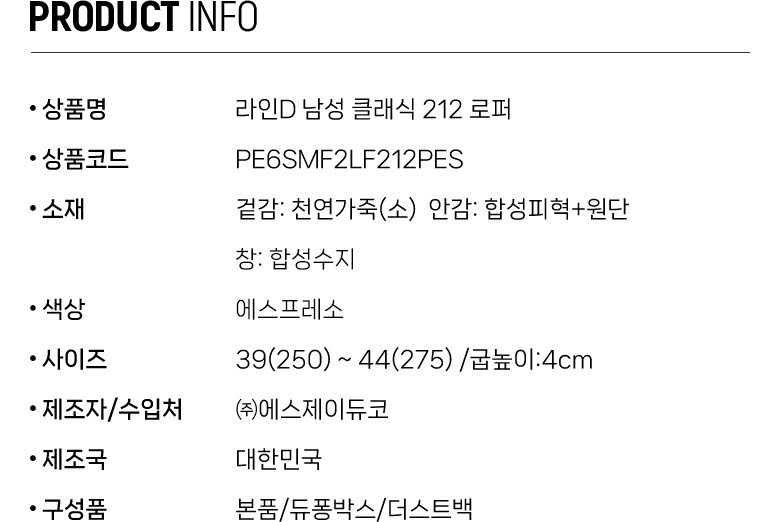 겉감: 천연가죽(소) 안감: 합성피혁+원단 창: 합성수지