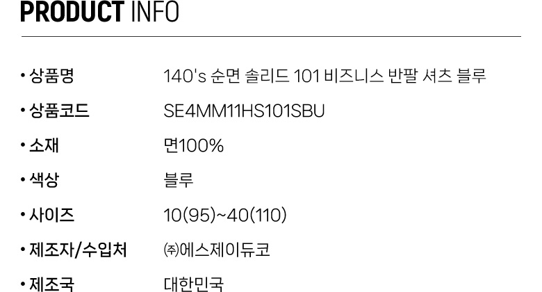 140's 순면 솔리드 101 비즈니스 반팔 셔츠 블루 SE4MM11HS101SBU