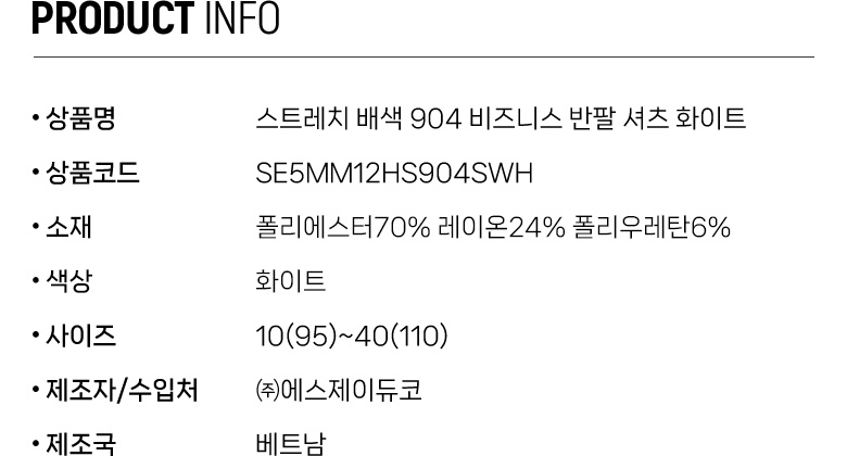 스트레치 배색 904 비즈니스 반팔 셔츠 화이트 SE5MM12HS904SWH
