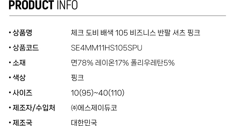 체크 도비 배색 105 비즈니스 반팔 셔츠 핑크 SE4MM11HS105SPU