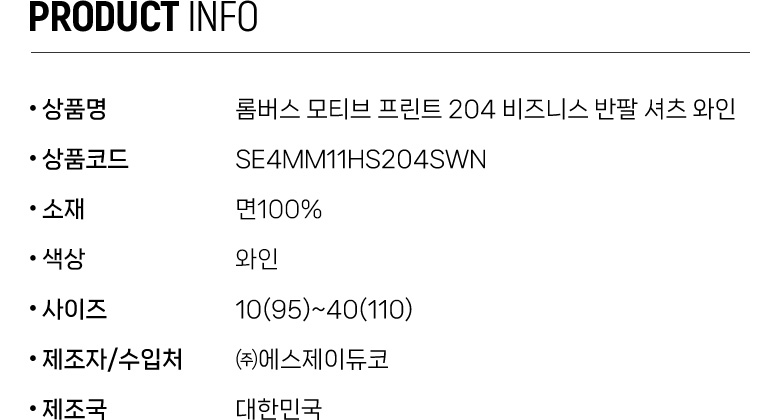 롬버스 모티브 프린트 204 비즈니스 반팔 셔츠 와인 SE4MM11HS204SWN