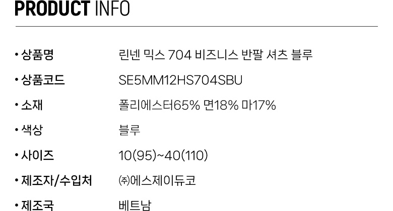 린넨 믹스 704 비즈니스 반팔 셔츠 블루 SE5MM12HS704SBU