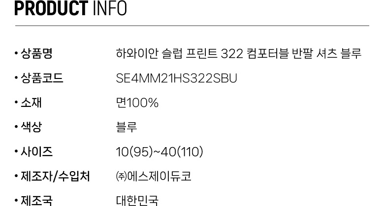 하와이안 슬럽 프린트 322 컴포터블 반팔 셔츠 블루 SE4MM21HS322SBU