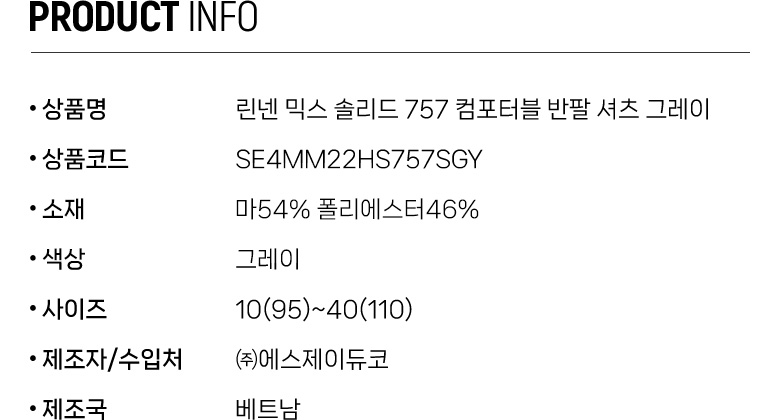 린넨 믹스 솔리드 757 컴포터블 반팔 셔츠 그레이 SE4MM22HS757SGY